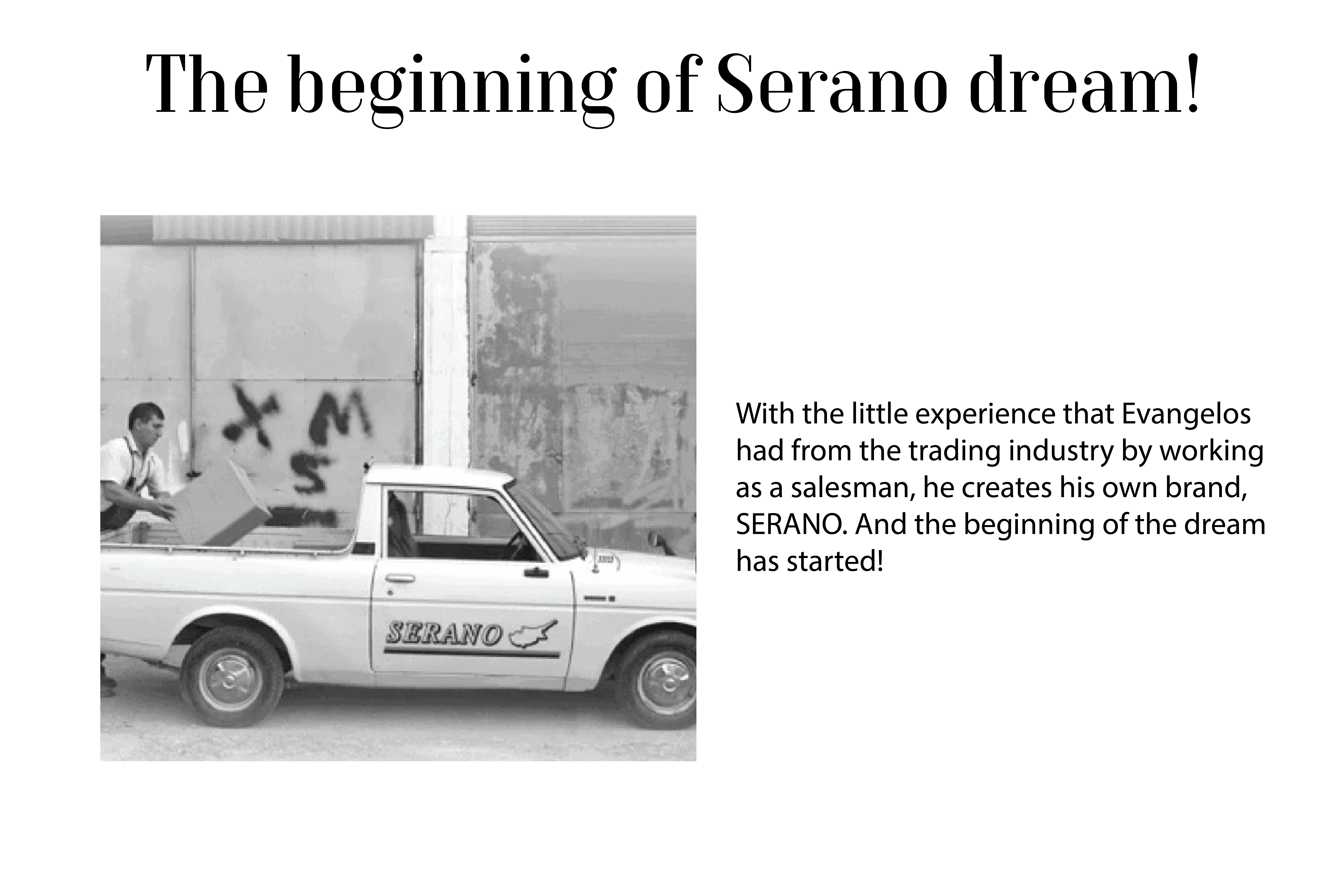 With the little experience that Evangelos had from the trading industry by working as a salesman, he creates his own brand, SERANO. And the beginning of the dream has started!