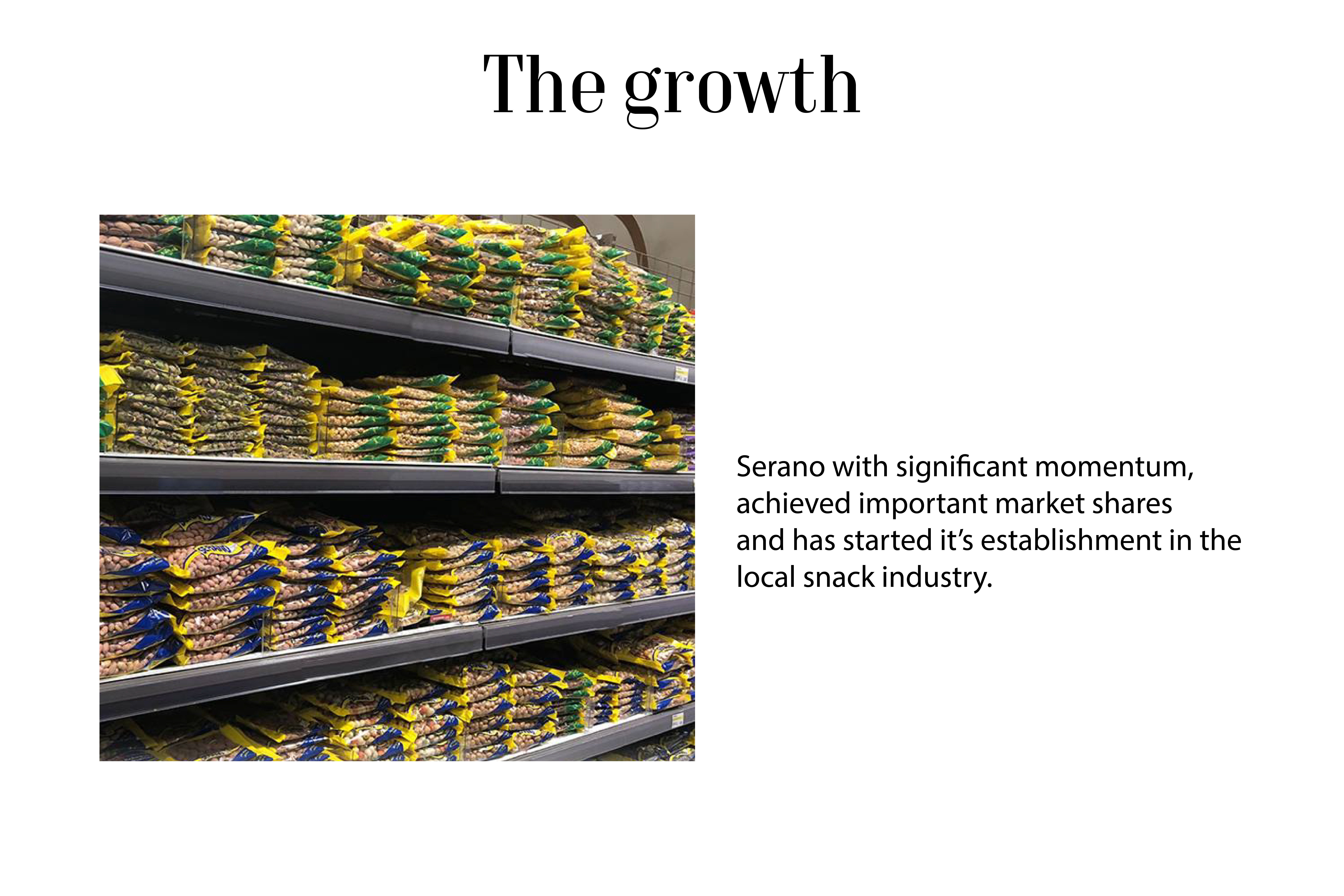 Serano with significant momentum, achieved important market shares and has started it’s establishment in the local snack industry.